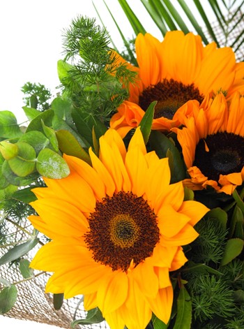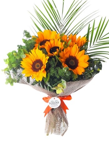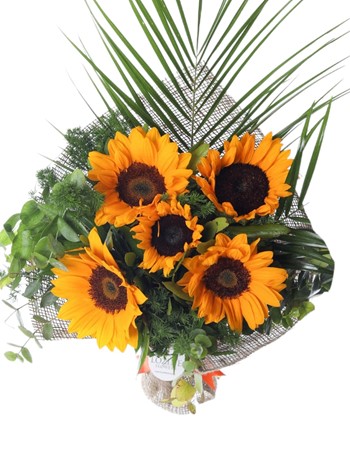 Ayçiçeği Latince kökenli bir kelimedir. Yaklaşık olarak 1-2 Metre boyunda, yaz mevsiminde sarı renkli, konu biçiminde ve yassı şeklinde çiçekler açan dik ve sert bir gövdesi olan bir üründür. Genel olarak ılık iklimlerde daha verimli olur, soğuk iklimlerde gelişimi daha yavaştır. Soğuk, yüksek yerler dışında ülkemizin bütün bölgelerinde görebilirsiniz. Oldukça güzel çiçeklerden bir tanesi olan ayçiçeği dışında Günebakan olarak da adlandırılan bu çiçek, değişik kültürlerde birçok anlam içerir. Güç, sadakat, pozitiflik, hayranlık manasını taşır. 5 adet ayçiçeği buketi en çok tercih edilen ürünlerden biridir. Buket şeklinde ya da cam vazoda edebilirsiniz. Son derece güzel kokan bu arajman siz de hemen sahip olabilirsiniz.