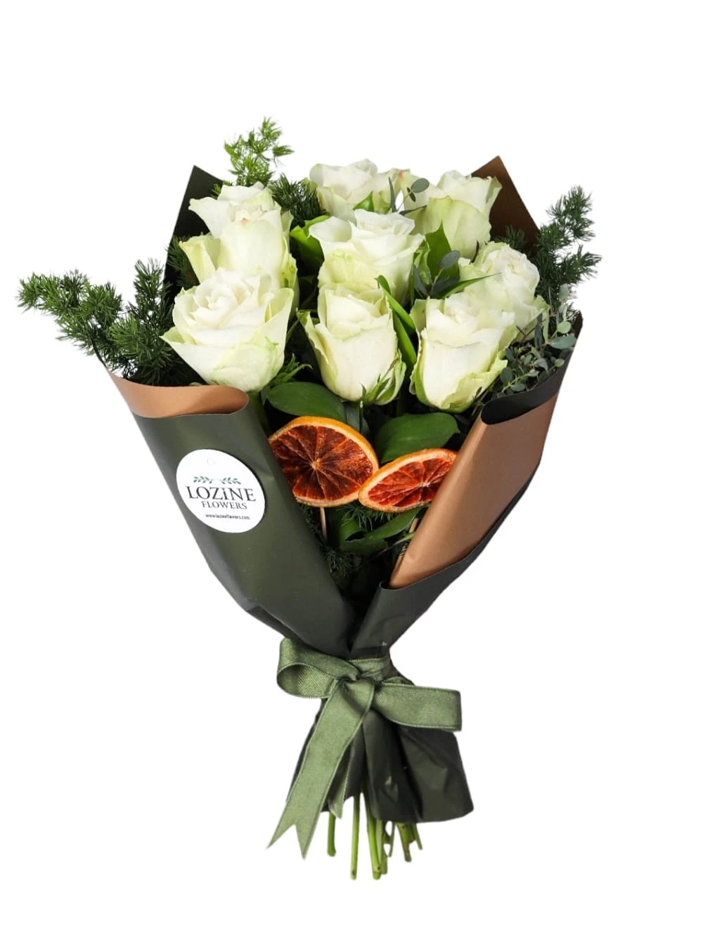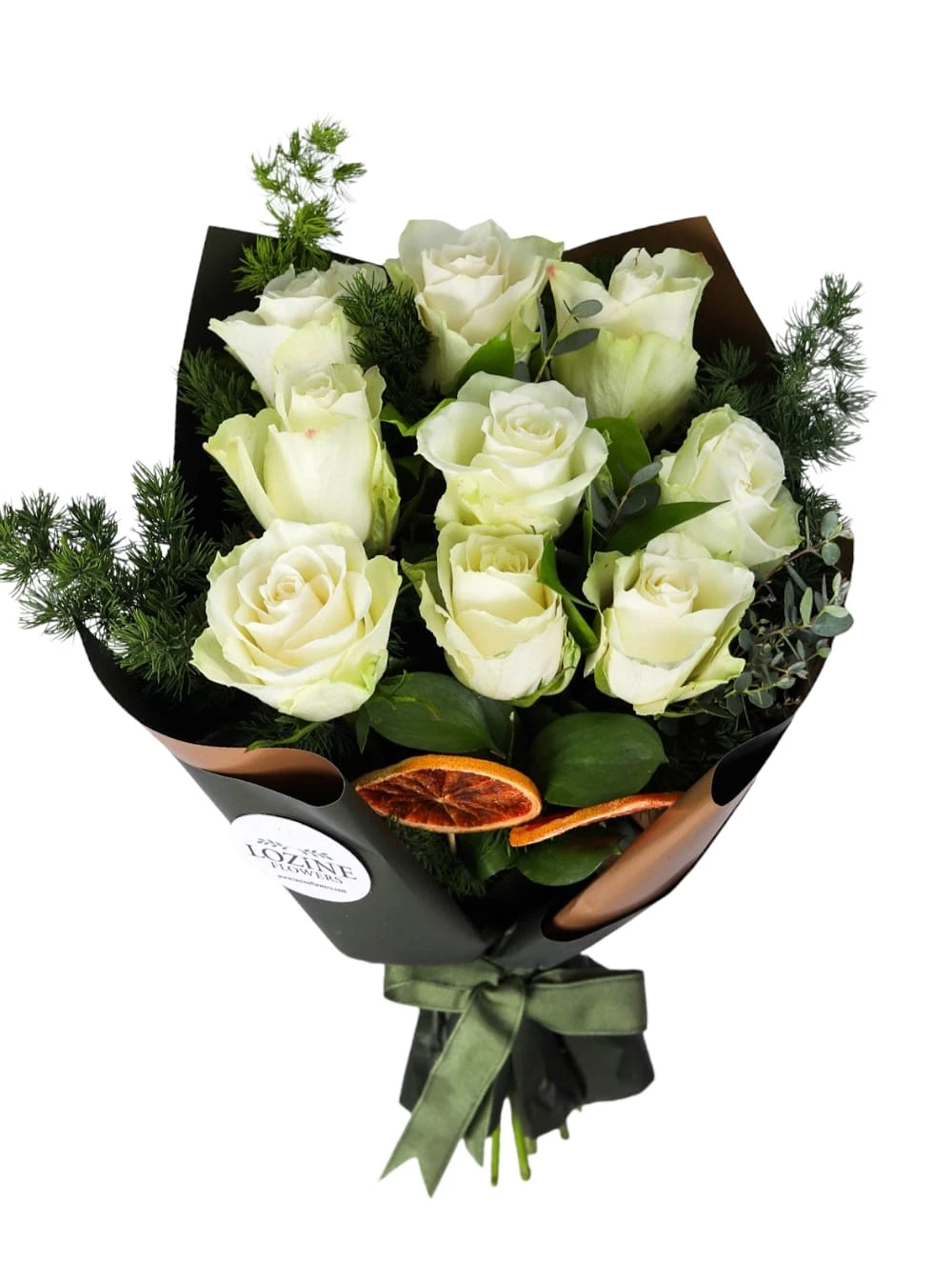 Bukette 9 Adet beyaz gül bulunmaktadır.