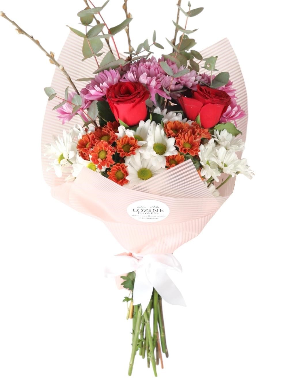 Baharın taptaze dokunuşunu ve zarif esintisini hissettiren Baharın Nefesi Buketi, renklerin ve kokuların büyüleyici bir uyumunu sunuyor. Bu özel tasarımda pastel tonlardaki mis kokulu papatyalar ve mevsimin en güzel çiçekleri bir araya geliyor. Her bir çiçek, özenle seçilerek sevgiyle hazırlanmış; yumuşak tonları ve doğal dokusu ile huzuru ve mutluluğu simgeliyor.