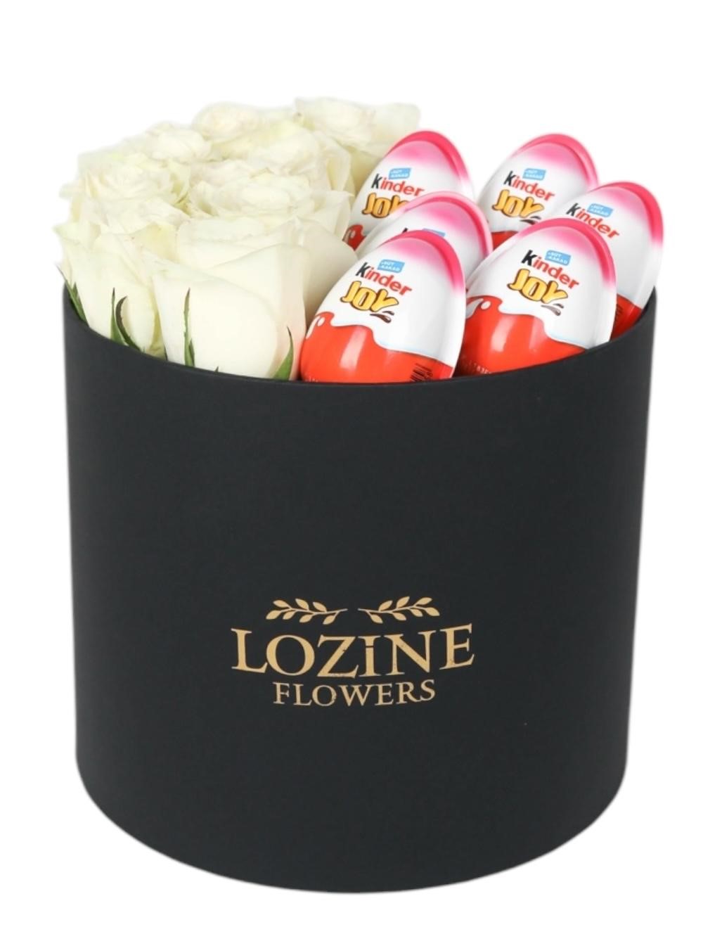 Bu eşsiz hediye, şıklığı ve tatlı sürprizi bir araya getirerek sevdiklerinize unutulmaz bir deneyim sunar. Zarif bir kutu içerisinde yer alan taze, canlı beyaz güller, romantik ve neşeli bir atmosfer yaratırken, Kinder Joy çikolatası da tatlı bir dokunuş katar. Hem estetik açıdan göz alıcı hem de lezzetli bir sürpriz olan bu hediye, özel günlerde veya sıradan bir günü özel kılmak istediğinizde harika bir seçimdir.