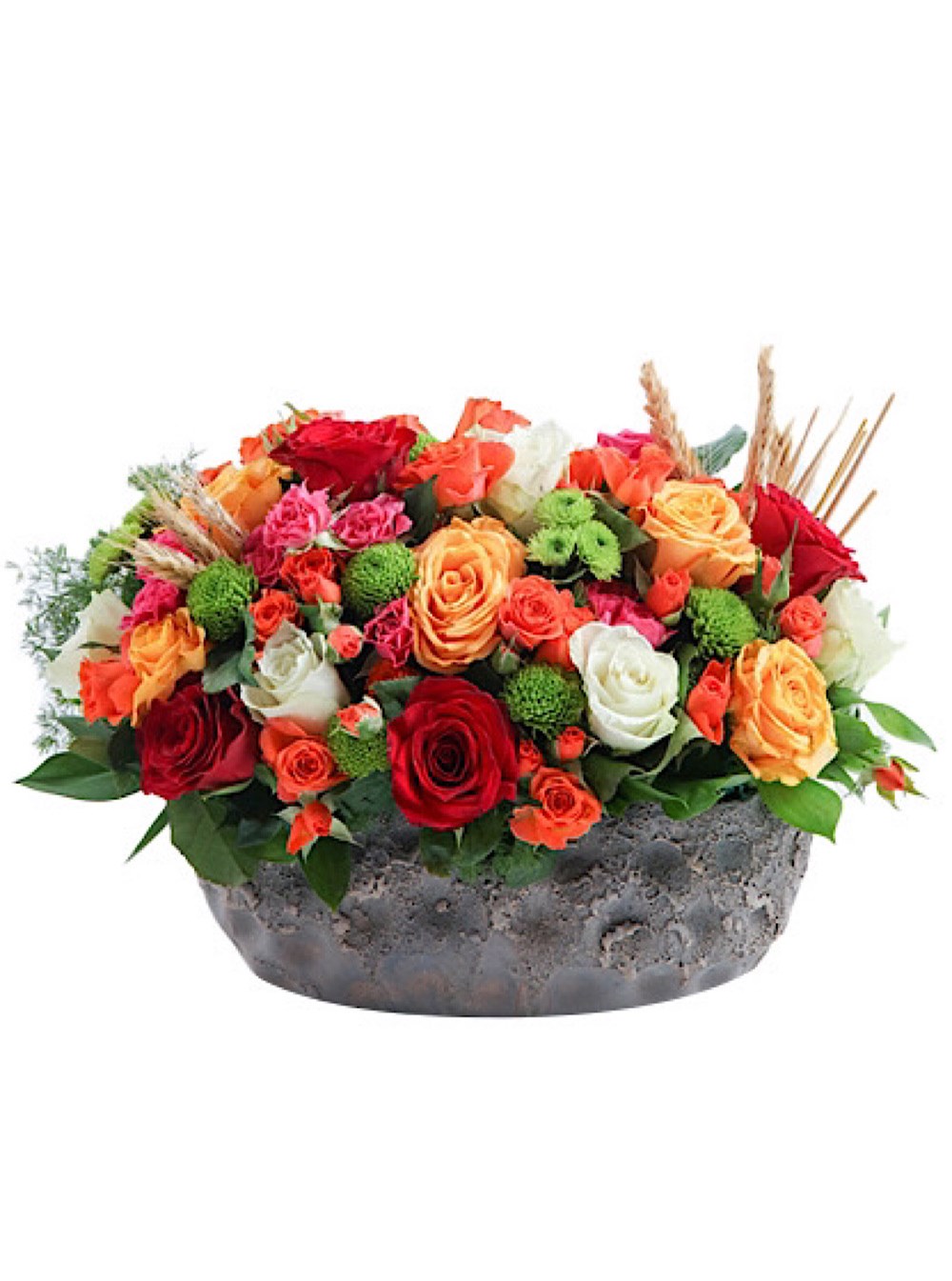 Kırmızı gül, beyaz gül, sarı gül, çardak gül ve yeşil süslemler bulunmaktadır.
