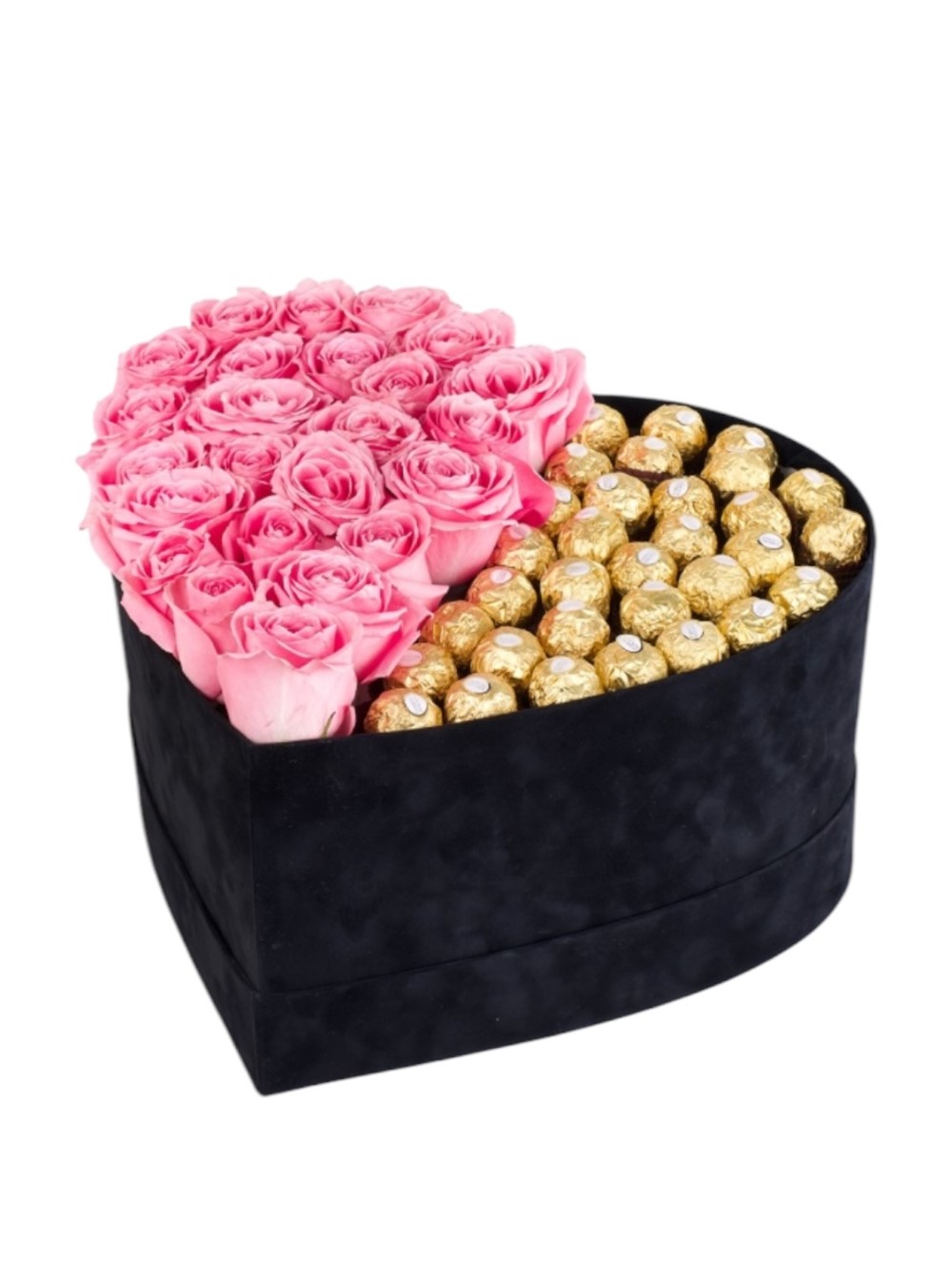 28 - 30 adet ithal pembe gül,32 adet ferrero rocher çikolata bulunmaktadır.