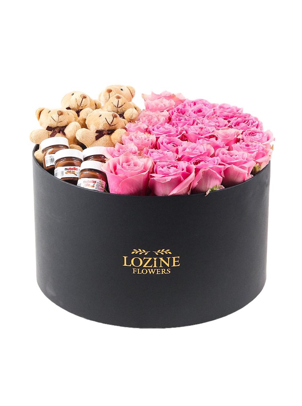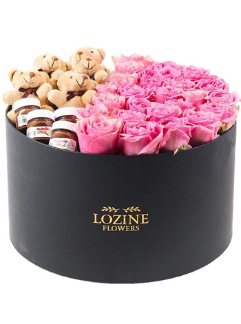 Kutuda 39-43 adet kırmızı gül 5 adet ayıcık ve 4 adet mini nutella bulunmaktadır.