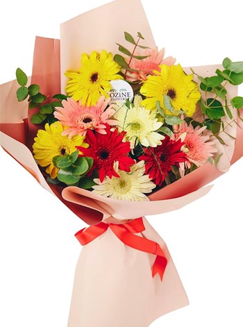 Gerbera, papatyagiller familyasına ait, genellikle Güney Afrika kökenli hoş ve renkli çiçeklerden oluşan bir cinstir. Gerberalar, büyük başları ve uzun ince saplarıyla dikkat çekerler ve genellikle kesme çiçek olarak kullanılırlar. Gerbera buketleri, çeşitli renkler ve türlerdeki gerbera çiçeklerinin bir araya getirilmesiyle oluşturulan güzel ve canlı aranjmanlardır. Bu buketler, sevdiklerinize mutluluk, neşe ve sevgi dolu bir hediye vermek için harika bir seçenektir.