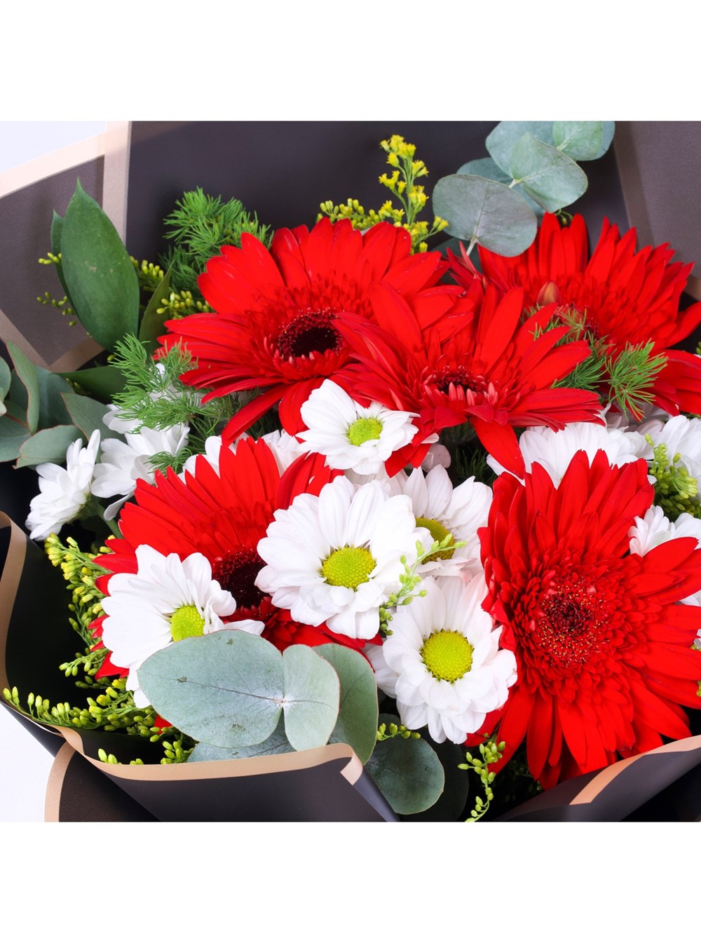 Kırmızı gerberaların canlı enerjisi ve beyaz papatyaların huzur veren sadeliği bir araya gelerek, duygularınıza hem şıklık hem de anlam katıyor. Ne çok gösterişli, ne de sıradan… Tam kararında ve her zevke hitap eden bu özel buketle, sevdiklerinize kalpten gelen bir mesaj bırakın.