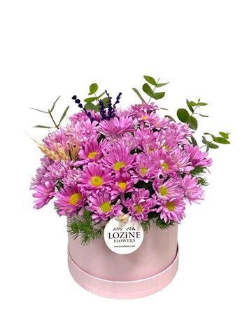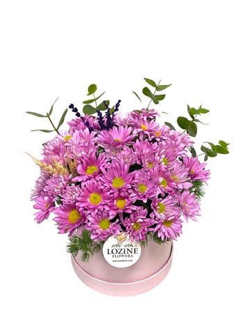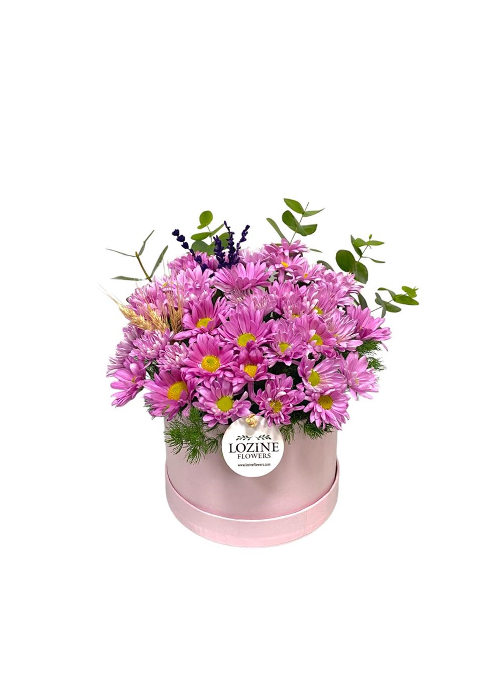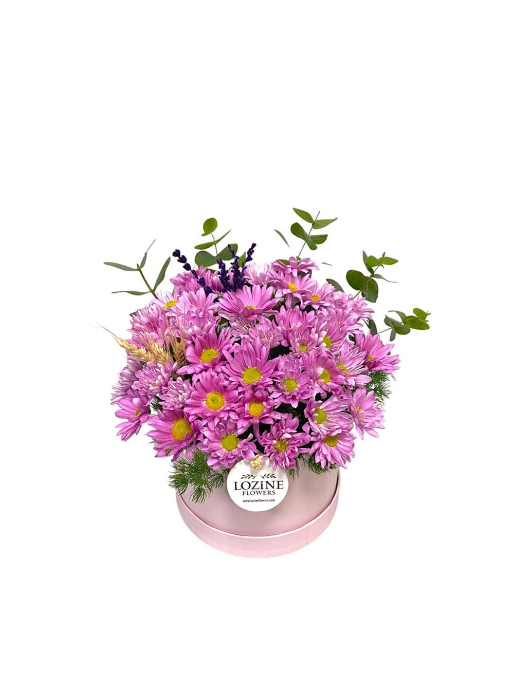 Pembe kutuda hazırlanmış pembe papatyalar.