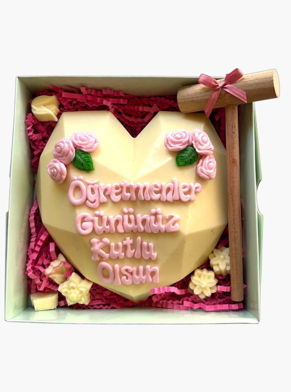 öğretmenler Günü Kalp Pinyata Pembe ürünümüzün içerisinde bir adet büyük kırılan pinyata kalp tokmak ve kalp kırılınca içinden çıkan mini tablet çikolatalar ve notunuzu içerir.