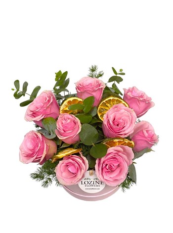 Pembe kutuda 9 adet pembe gül bulunmaktadır.