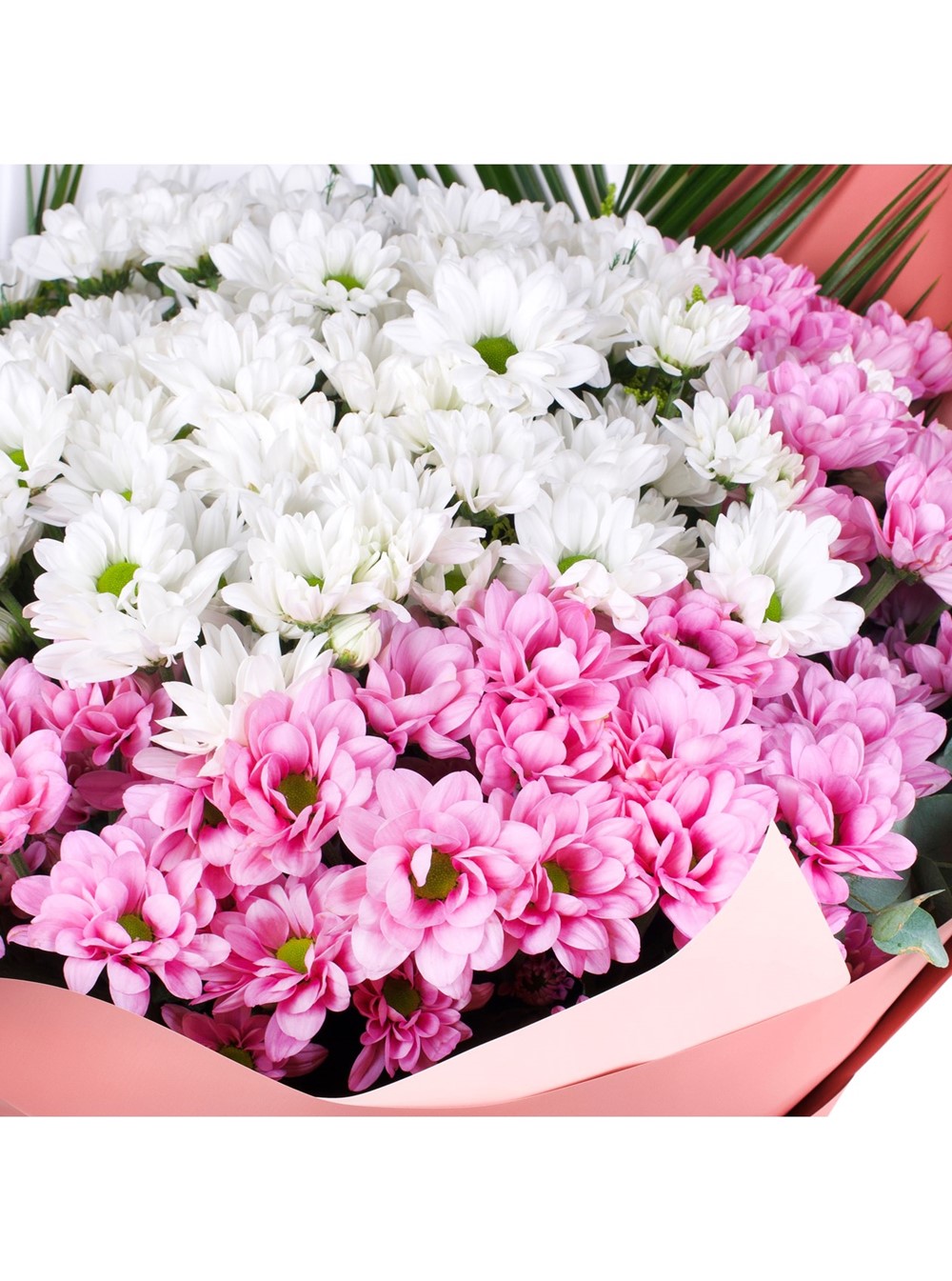 Her biri özenle seçilmiş beyaz ve pembe dev papatyalar, adeta doğanın masumiyetini ve baharın tazeliğini yansıtır. Papatyaların büyük ve gösterişli formları, bukete hem zarif bir duruş hem de güçlü bir ifade kazandırır. Pembe tonların romantizmiyle beyazın huzur veren sadeliği buluşarak, göz alıcı ve duygu yüklü bir aranjman ortaya çıkarır.