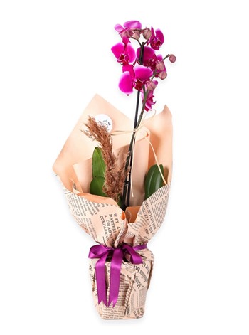 Tek dal mor orkide, doğanın zarif bir hediyesidir. Bu nadide çiçek, ince ve gösterişli yapraklarıyla herkesin ilgisini çeker. Gazete kağıdıyla sarılıp hediye edilen bu orkide, sadece bir hediye değil aynı zamanda bir mutluluk kaynağıdır. Mor orkide, zarafet ve asaletin simgesi olarak bilinir. Bu nedenle sevdiklerinize mor orkide hediye etmek, onlara özel ve değerli olduklarını hissettirecektir.