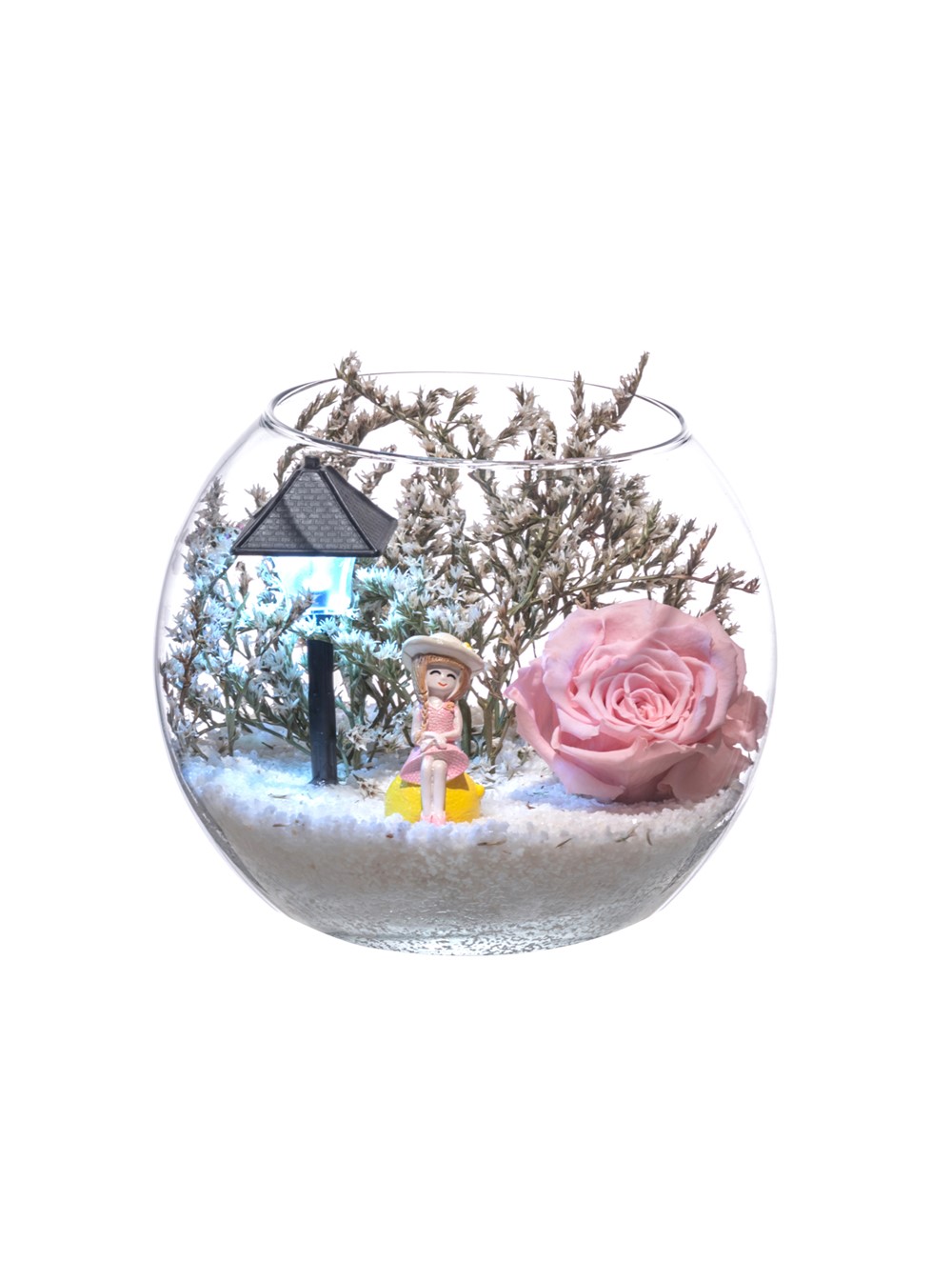 TERARYUM SOLMAYAN GÜL IŞIKLI SEVİMLİ KIZ