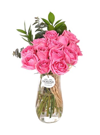 Paşabahçe silindir vazoda 13 adet pembe gül bulunmaktadır.