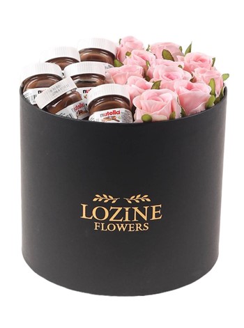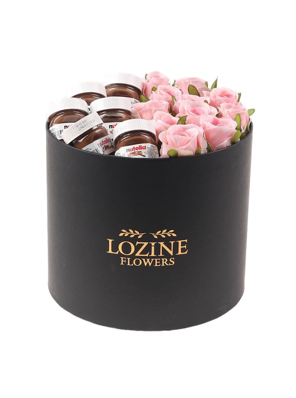 Kutuda 11 adet yapay pembe gül ve 6 adet mini nutella bulunmaktadır.