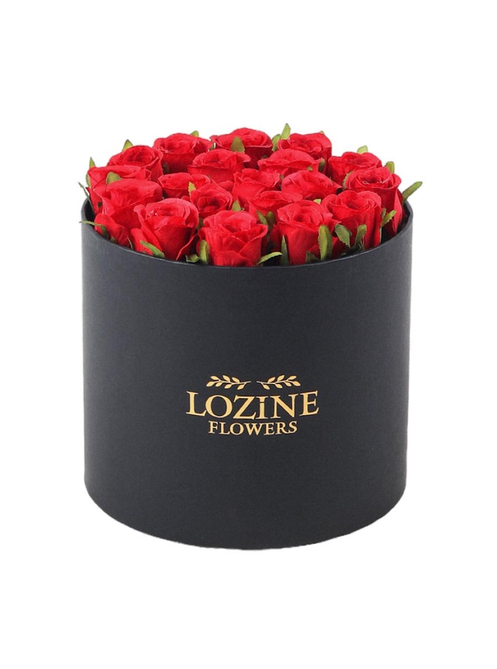 Yuvarlak Büyük Siyah Kutuda Yapay Kırmızı Gül