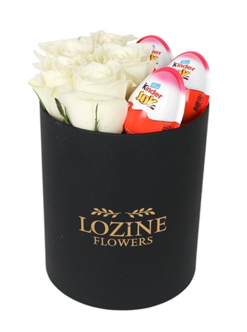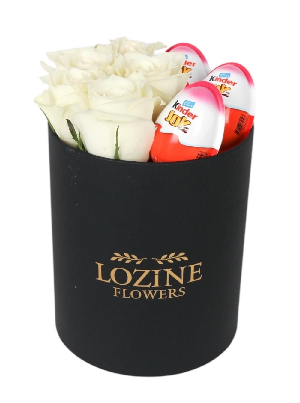 Bu eşsiz hediye, şıklığı ve tatlı sürprizi bir araya getirerek sevdiklerinize unutulmaz bir deneyim sunar. Zarif bir kutu içerisinde yer alan taze, canlı beyaz güller, romantik ve neşeli bir atmosfer yaratırken, Kinder Joy çikolatası da tatlı bir dokunuş katar. Hem estetik açıdan göz alıcı hem de lezzetli bir sürpriz olan bu hediye, özel günlerde veya sıradan bir günü özel kılmak istediğinizde harika bir seçimdir.
