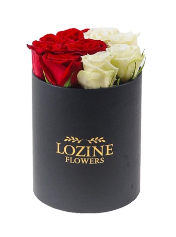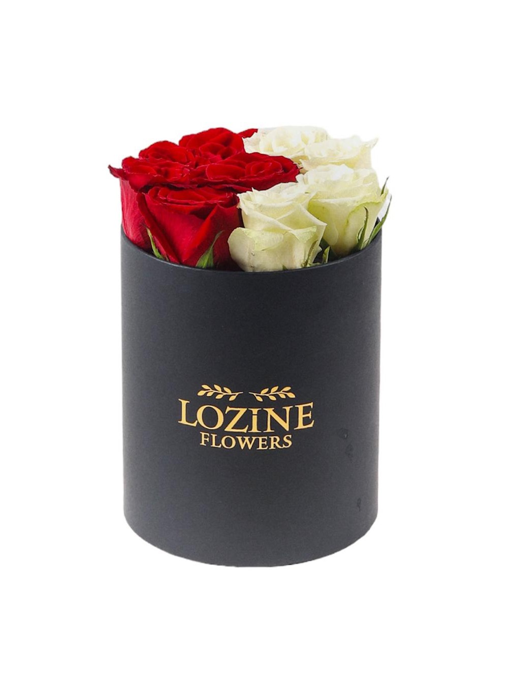 Yuvarlak Siyah Kutuda Kırmızı ve Beyaz Güller